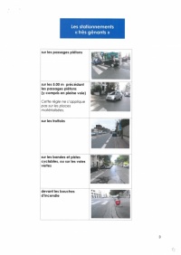 Vous trouverez ci-après la liste des différents stationnements "très gênants" ainsi que les différentes règles applicables à la circulation cycliste.
