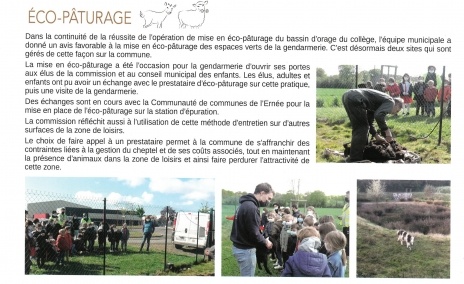 Différentes zones d'écopâturages ont été installées sur la commune : à la gendarmerie, au bassin d'orage près du collège.